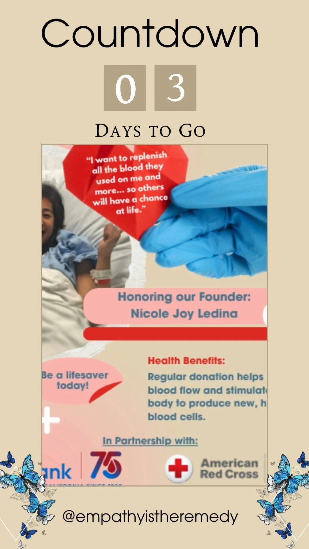 "I want to replenish all the blood they used on me and more… so others will have a chance at life." - Nicole Joy Ledina
